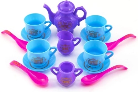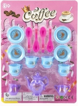 Jedes kleine Mädchen braucht in ihrer Kinderküche Geschirr, um Tee und Kaffee für ihre Freundinnen und Stofftiere zuzubereiten. Das Set enthält 4 Tassen mit Untertassen, Löffel, eine Kanne für Kaffee oder Tee mit Deckel, eine kleinere Kanne für Sahne und eine Zuckerdose.