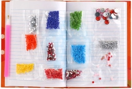 Enthält mehr als 1500 Steine in zehn verschiedenen Farben, die Ihrem Tagebuch ein einzigartiges Aussehen verleihen.