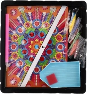 Mit Hilfe der speziellen Werkzeuge und der detaillierten Anleitung befestigen Sie die Steine einfach an den einzelnen Teilen des Designs, was Ihnen ermöglicht, wunderschöne Muster und Ornamente zu schaffen. Das Kreativset fördert die Feinmotorik und stimuliert die Kreativität.