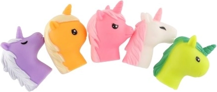 Dieses Set enthält fünf Gummieinhörner in verschiedenen Farben, jedes mit einem einzigartigen Design und Ausdruck. Sie sind aus hochwertigem Material gefertigt, das ihre Langlebigkeit und Sicherheit beim Spielen gewährleistet.