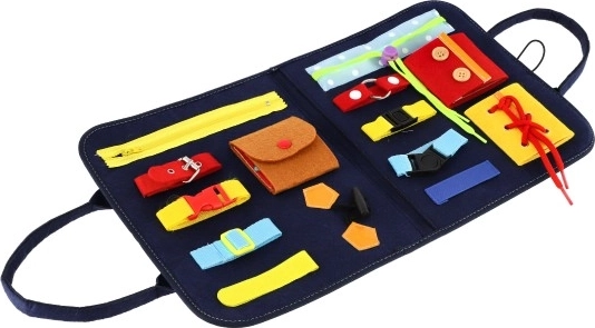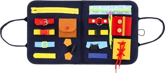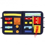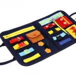 Diese edukative Motoriktafel bietet eine breite Palette an Tätigkeiten, mit denen Kinder spielerisch Fingerfertigkeit und Hand-Auge-Koordination trainieren. Verschiedene Verschlussarten – von Reißverschlüssen über Knöpfe bis hin zu Schnallen – bilden Alltagssituationen beim Anziehen nach und fördern die Selbstständigkeit.