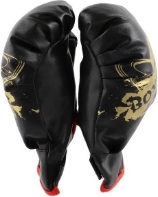 Die Handschuhe haben ein attraktives Design in Schwarz mit goldener Schrift und roten Details, die ein luxuriöses Aussehen verleihen. Mit einer Länge von etwa 20 cm sind sie die perfekte Wahl für kleine Hände, und der Schutz, den sie bieten, ermöglicht es Kindern, sicher zu spielen und Boxen zu lernen.