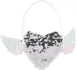 Verleihen Sie Ihrem Outfit einen einzigartigen Look mit dieser zauberhaften Tasche, die die Form eines Herzens und Flügel an den Seiten hat. Ändern Sie die Farbe der Pailletten nach Ihrer Stimmung - wählen Sie zwischen elegantem Silber oder einer verspielten Rosa-Blau-Kombination. Die Tasche ist ideal für die Aufbewahrung von Kleinigkeiten, die Sie immer zur Hand haben möchten.