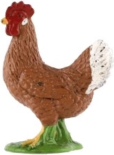 Treffsicher modelliertes Gefieder, natürliche braune Färbung mit weißem Schwanz und rotem Kamm verleihen der Figur das authentische Aussehen einer echten Henne.