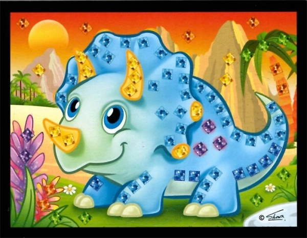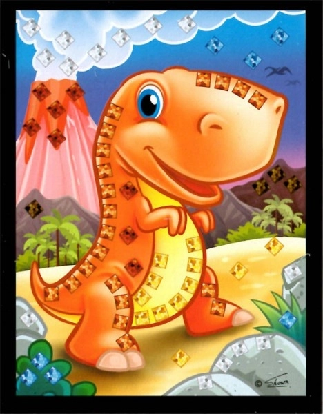 Erstellen Sie Ihr eigenes glitzerndes Bild mit Dinosauriermotiv mit diesem Mini-Mosaik in der Größe 10x12 cm.