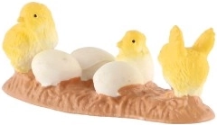 Schmücken Sie Ihr Zuhause mit diesem schönen Plastikdekorstück, das gelbe Küken und weiße Eier auf einem braunen Untergrund darstellt. Dieses niedliche Accessoire bringt Frische und den Charme des Frühlings oder Osterfestes in Ihr Zuhause.