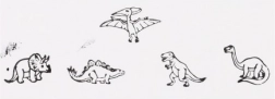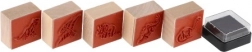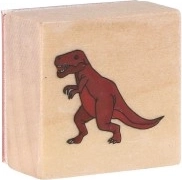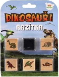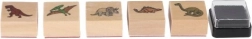Fünf Holzstempel mit Dinosauriermotiven und ein Stempelkissen im Set – einfach öffnen und losstempeln.