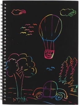 Einfach kratzen und unter der schwarzen Oberfläche erscheinen leuchtende Farben. Idealer Kreativspaß ganz ohne Farben und Kleber.