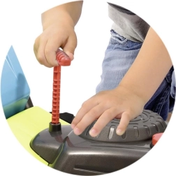 Enthalten ist ein blauer, herausnehmbarer Korb, der in den Innenraum eingesetzt oder am Griff eingehängt werden kann. Den realistischen Eindruck vervollständigen die Schalter-Imitation und der rote „Zugstarter“ – nach Einschieben und Ziehen erzeugt der Mäher ein charakteristisches Startgeräusch, wodurch das Spiel noch unterhaltsamer wird.
