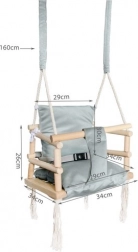 Dank des minimalistischen Designs und der hochwertigen Materialien ergänzt sie moderne Innenräume hervorragend. Die Montage ist einfach, Seile mit einem Durchmesser von 10 mm gewährleisten eine zuverlässige Aufhängung. Die Schaukel ist für Kinder geeignet, die bereits selbstständig sitzen, mit einer Tragfähigkeit von bis zu 25 kg.