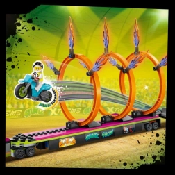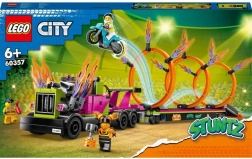 Führe atemberaubende Sprünge und Flüge durch brennende Reifen vor! Dieses actionreiche Set aus der Reihe LEGO City Stuntz bietet alles für eine spannende Show: ein robuster LKW mit Tieflader, eine ausklappbare Startrampe und drei verstellbare Ringe mit Flammen für unterschiedliche Schwierigkeitsgrade. Das Schwungrad-Motorrad schießt mit unglaublicher Geschwindigkeit los – der Spaß kann beginnen.
