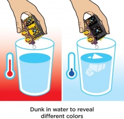 Tauchen Sie die Lok in warmes oder kaltes Wasser und beobachten Sie die sofortige Farbverwandlung. Der Effekt lässt sich immer wiederholen und wird nie langweilig.