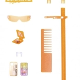 Die Puppe kommt mit zahlreichen stylischen Accessoires, darunter ein Kamm, Sonnenbrille, Aufhänger, Make-up-Palette und ein Getränkebecher, was sie zu einem großartigen Ort für Styling und Spiel macht.
