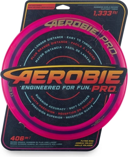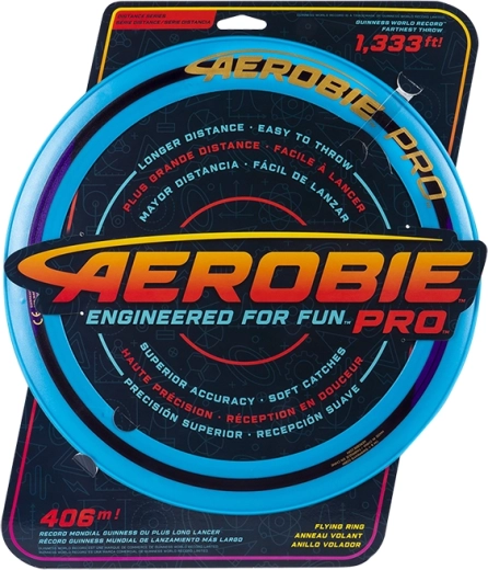 In Wurfspielen kommt nichts an die Leistung des Aerobie Pro Ring heran. Mit diesem Ring wurde der Weltrekord im Weitwurf aufgestellt – unglaubliche 406 Meter. Sein schlankes Design und der Durchmesser von 33 cm ermöglichen solche Distanzen. Zudem sorgen weiche Kanten für ein angenehmes Fangen. Die offene Mitte erlaubt jedem Spieler einen eigenen Wurf- und Fangstil. Erhältlich in verschiedenen Farben, einzeln verkauft. Hinweis: Dieser Ring schwimmt nicht auf dem Wasser. Alter 12+.