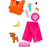 Dieses Spielset umfasst auch eine Schwimmweste, Handtuch, Stereoanlage, Frisbee, Sonnenbrille, Wasserflasche, Sonnencreme, Banane und mehr. Die Barbie-Puppe hat einen beweglichen Körper, der realistische Bewegungen für lebendige Spiele ermöglicht!