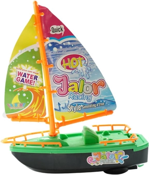 Farbiges Segelboot mit Batterie, das auf dem Wasser schwimmt.