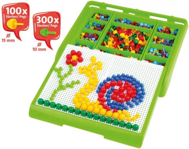 Der tragbare Koffer mit Mosaik von Lena bietet unzählige Möglichkeiten für ein lustiges und lehrreiches Spiel. Das in der Packung enthaltene Brett ermöglicht kreatives Einstecken der Stifte in die Mosaikmuster, was die Entwicklung von Fantasie, Konzentration und Feinmotorik fördert. Das Set enthält: