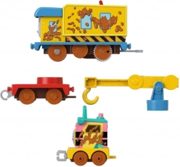 Eine Sammlung von Lokomotiven mit Antrieb, die fröhliche und charakteristische Momente aus dem Märchen 'Tomek und Freunde' nachahmen.