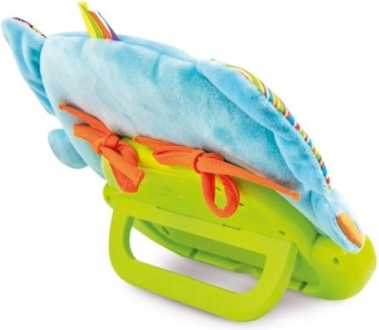 Dank des praktischen Befestigungssystems und des klappbaren Ständers passen Sie das Spielzeug schnell ans Bettchen oder an das Spielen in Bauchlage an.