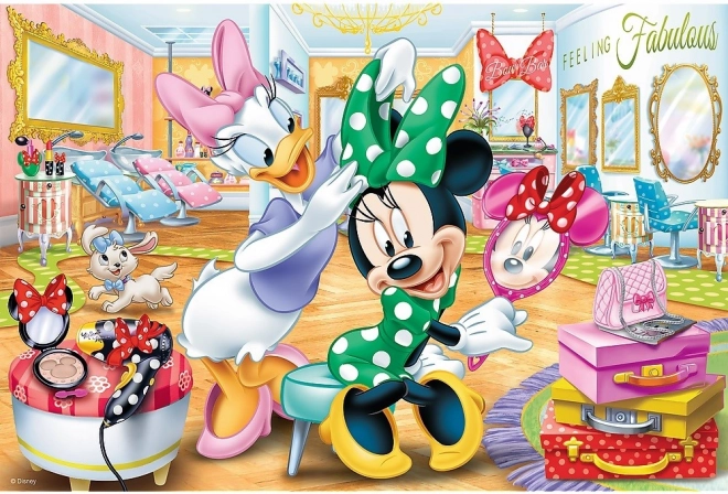 Genießen Sie die spielerische Atmosphäre eines Kosmetiksalons mit den beliebten DISNEY-Figuren – Minnie und Daisy. Das Puzzle mit 100 Teilen ist ideal für Vorschulkinder und jüngere Schulkinder, fördert Feinmotorik, Geduld und logisches Denken. Dank des hochwertigen, blendarmen Papiers lassen sich die Teile leicht finden und verbinden.