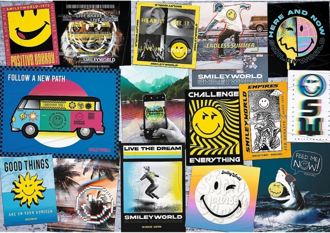 Genießen Sie Spaß und gute Laune mit einem Puzzle aus 1000 Teilen aus der SMILEY-Kollektion. Die farbenfrohe Collage des ikonischen Lächelns auf Fotos und Plakaten bringt positive Energie und ist perfekte Entspannung für freie Momente.