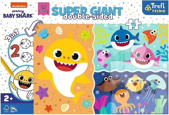 Riesiges Baby‑Shark‑Puzzle aus der Reihe Trefl Primo vereint bis zu drei verschiedene, unterhaltsame Aktivitäten in einem. Dieses große Puzzle besteht aus 15 Teilen, die speziell für kleine Kinder und die Förderung ihrer Feinmotorik sowie visuellen Wahrnehmung gestaltet wurden. Einfache, farbenfrohe Grafiken mit großen Figuren regen zum Entdecken und selbstständigen Puzzeln an.