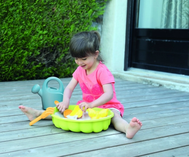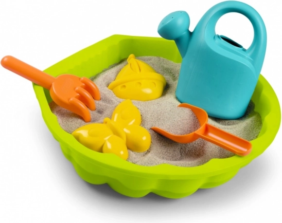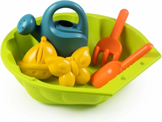 Das Set enthält Harke, Gießkanne, Schaufel und 2 Sandformen, die das Spiel noch unterhaltsamer machen.