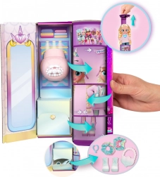 Das Auspacken macht Spaß! Drehen Sie die spezielle Röhre – die originelle Box, die als stylischer Schrank dient – und entdecken Sie mehr als 9 Accessoires: Outfit-Teile, eine Handtasche, einen Haarreifen oder eine Mütze, ein Paar Schuhe mit Socken und eine BFF-Halskette. Jedes Detail ist darauf ausgelegt, die Fantasie zu fördern und das Stilgefühl zu entwickeln.