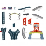 Mit diesem Fisher-Price Zug- und Gleis-Set mit Anschub-Lok können Kinder das große Sodor-Cup-Rennen aus Thomas & seine Freunde nachspielen! Kinder können die Gusslokomotiven Thomas und Kana an die Startlinie stellen und den Hebel ziehen, damit die beiden Freunde durch die Kurven zur Ziellinie rasen. Dieses Track-Set ist voller spannender Kurven, die den freundschaftlichen Wettbewerb noch unterhaltsamer machen. Wer kommt zuerst ins Ziel und holt sich die Trophäe?