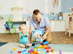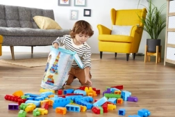 Die großen Steine liegen gut in der Hand und lassen sich leicht verbinden, sodass Kinder bei jedem Bauen Koordination, Konzentration und Fantasie trainieren.