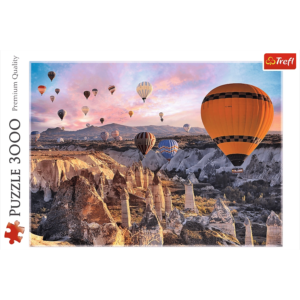 Begeben Sie sich in die magische Landschaft der Türkei und genießen Sie stundenlang konzentriertes Puzzeln. Das Motiv der Heißluftballons über den Felsformationen Kappadokiens besticht durch zahlreiche Details und beeindruckende Farben, die nach dem Zusammenlegen eine faszinierende Wanddekoration im Format 116 × 85 cm ergeben.