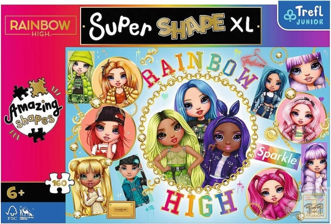 Entdecken Sie den Spaß mit dem farbenfrohen Motiv RAINBOW HIGH. Die XL Super Shape Puzzle bieten nicht nur 160 Teile, sondern auch spezielle, außergewöhnliche Formen, die das Puzzeln noch interessanter machen und Kinder länger fesseln.