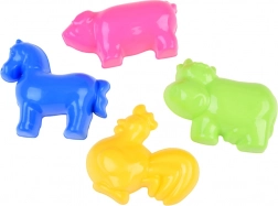 Dank der bunten Sandfarben und der vielfältigen Förmchen können Kinder ganze, farbenfrohe Bauernhöfe mit Tieren gestalten.