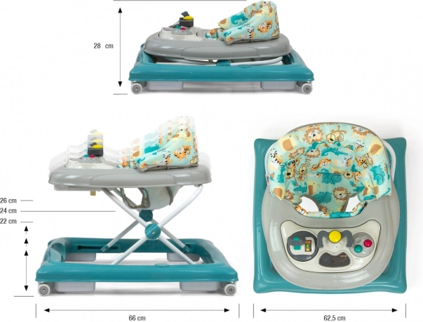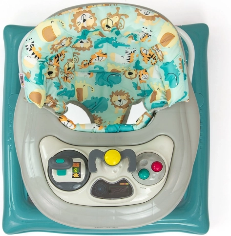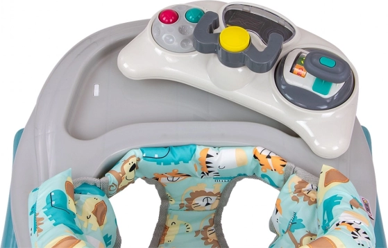 Das Produkt verfügt über ein Lernpanel mit zahlreichen Überraschungen für kleine Entdecker: Lichter, Pfeiftöne, Melodien, Rasseln, Tasten und weitere bewegliche Elemente. Nach dem Herausnehmen des Panels aus der Schale der Lauflernhilfe dient es als eigenständiges Spielzeug, z. B. als angenehmer Reisebegleiter, und die obere Fläche eignet sich als Spieltisch.