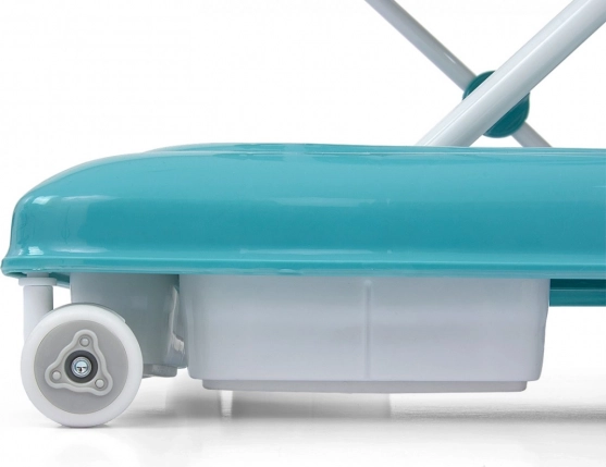 Vier hochwertige drehbare Räder, die die Oberfläche nicht verkratzen, auf der sie sich bewegen, sorgen für Bewegungsfreiheit, und acht Gummipuffer schützen Ihr Kind vor dem Herunterrutschen von Treppen oder anderen Hindernissen.