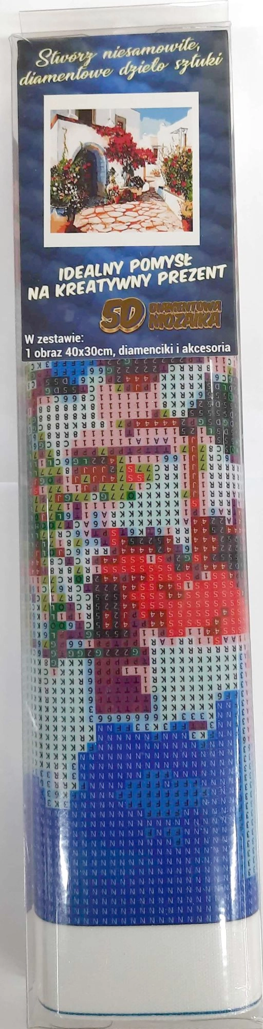 Diamantmalerei – Vorgehensweise: Die Leinwand hat eine klebrige Schicht, bedeckt mit Folie, die Sie schrittweise entfernen. Entfernen Sie die Folie abschnittsweise gemäß der Anwendung der Steinchen, um Verschmutzungen der Klebeschicht zu vermeiden. Tragen Sie die Steinchen gemäß den auf der Leinwand abgebildeten Symbolen, die der beigefügten Legende entsprechen.