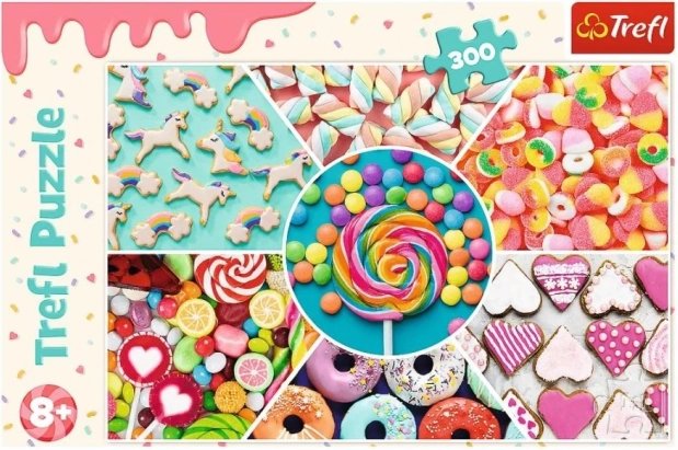 Genießen Sie das Puzzeln mit einem 300-teiligen Puzzle mit Süßigkeitenmotiv von der Marke Trefl, hergestellt aus hochwertigen Materialien.