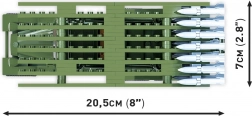 Das Modell im Maßstab 1:35 besteht aus 440 hochwertigen Teilen und bildet dank moderner COBI-Elemente die charakteristischen Formen des Originals getreu nach. Mit dabei sind drehbare Räder mit Reifen, Verstellung des Starters, eine öffnende Kabine sowie abnehmbare Raketen. Sämtliche Grafiken sind gedruckt, ganz ohne Aufkleber, und die zwei Figuren der sowjetischen Bedienmannschaft verfügen über detaillierte Drucke, einschließlich der Rückseiten.