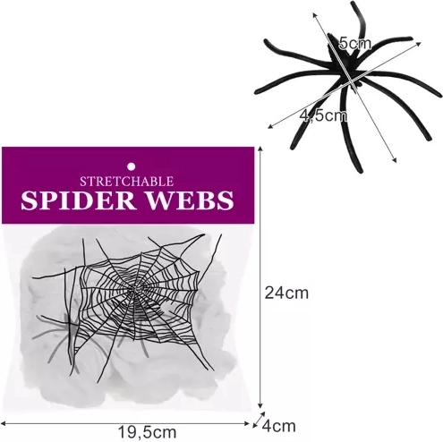 Im Lieferumfang sind 2 schwarze Spinnen für einen noch stärkeren Effekt enthalten. Die Dekoration eignet sich für Mottopartys, Hausdekoration und Firmenevents. Die Montage ist schnell und einfach – das Netz zwischen den gewünschten Stellen spannen und mit den Spinnen ergänzen.