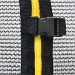 Die Installation ist schnell und einfach: Das Netz wird an 8 Stangen befestigt und der untere Bereich mit einer Kordel gesichert. Der Einstieg ist mit Reißverschluss und Sicherheitsschnallen ausgestattet, um die Sicherheit beim Springen zu erhöhen. Dank der universellen Abmessungen eignet es sich für Trampoline verschiedener Hersteller.