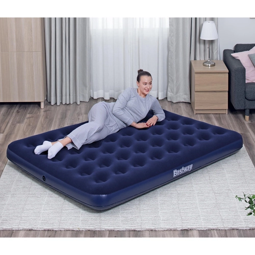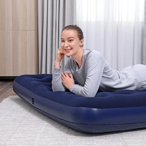 Genießen Sie erholsamen Schlaf, wo immer Sie sind. Die aufblasbare Doppelmatratze BESTWAY PAVILLO kombiniert robustes PVC mit weichem Velours auf der Liegefläche für höheren Komfort und besseren Halt der Bettwäsche. Die stabile Coil‑Beam-Konstruktion verteilt das Gewicht gleichmäßig und reduziert das Wippen beim gemeinsamen Schlafen.