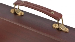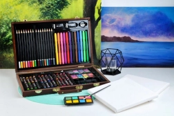 Alle Künstlermaterialien sind ordentlich in einem aufklappbaren Holzkoffer mit Fächern angeordnet, sodass Sie stets schnellen und einfachen Zugriff auf alles haben, was Sie benötigen.