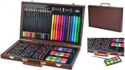 Dieses vielseitige Kreativ-Set bietet alles, was Sie zur Entfaltung Ihrer Kreativität brauchen – vom Skizzieren bis zur Aquarellmalerei. Alles ist in einem robusten Holzkoffer mit sicheren Metallverschlüssen und einem bequemen Ledergriff für einfaches Tragen untergebracht. Dank separater Fächer haben Sie jedes Werkzeug sofort griffbereit und perfekt organisiert.