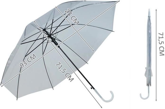 Eleganter und praktischer transparenter Regenschirm, der Sie zuverlässig vor Regen schützt und dennoch die Sicht nicht verdeckt. Dank der automatischen Öffnung lässt er sich mit einem Knopfdruck ausklappen – perfekt für die Stadt, Hochzeiten, Fotoshootings und Dreharbeiten. Die leichte Konstruktion mit stabilem Metallgestell und gebogenem Griff sorgt für angenehmen Halt und leichtes Aufhängen nach dem Gebrauch.