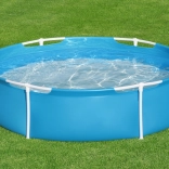 Der Pool ist mit einem stabilen Metallrahmen ausgestattet, der die nötige Festigkeit und Haltbarkeit der gesamten Konstruktion sicherstellt. Die Wände bestehen aus dreilagigem Material – einer Kombination aus widerstandsfähigem Polyester und PVC –, das vor Beschädigungen schützt.
