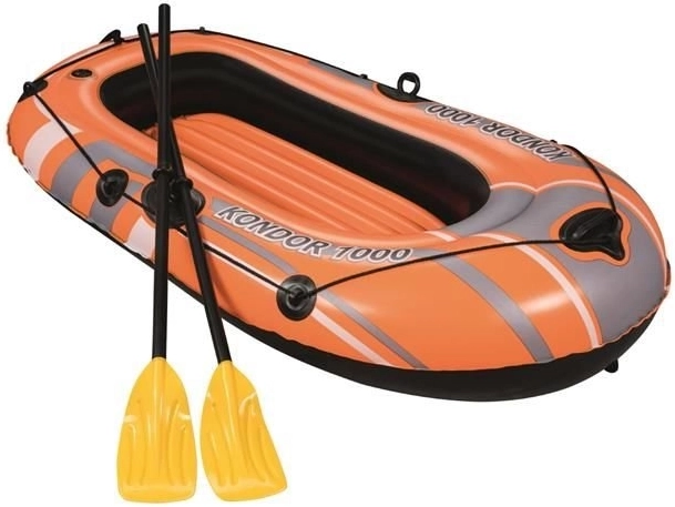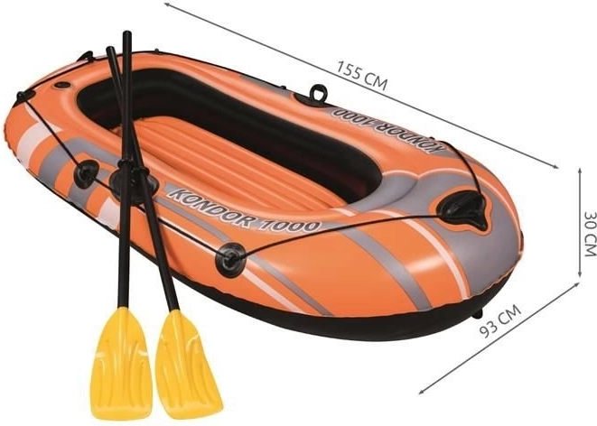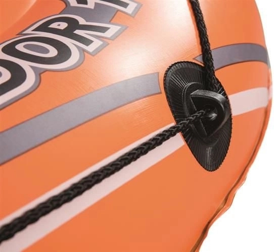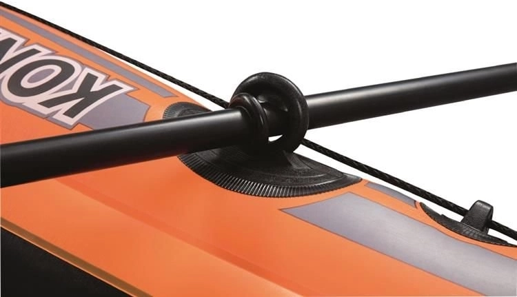 Das Boot besitzt robuste Dollen für effizientes Paddeln und einen flexiblen Schleppring. Die Konstruktion besteht aus starkem, geprüftem Vinyl und bietet Sicherheit und Haltbarkeit. Alle Ventile sind für schnelles Auf- und Abpumpen ausgelegt, außerdem ist ein Sicherheitsventil vorhanden. Im Lieferumfang sind 1,24 m lange Paddel mit GS-Zertifizierung enthalten.