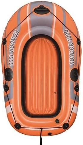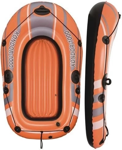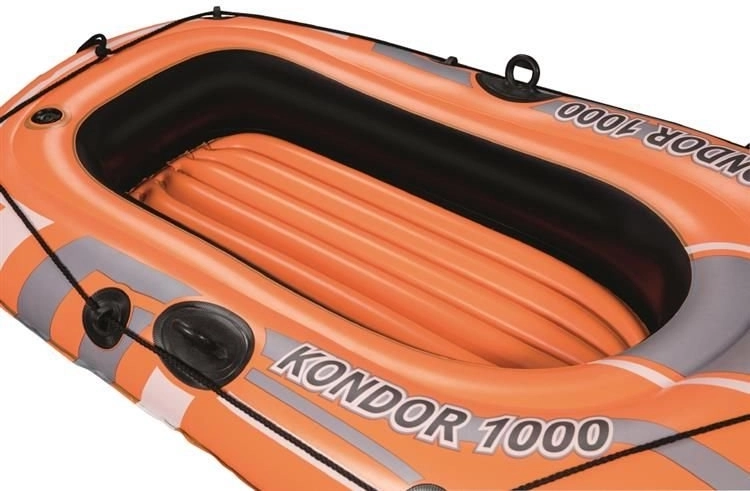 Das aufblasbare Boot Kondor 1000 ist für Freizeitaktivitäten auf dem Wasser konzipiert. Es verfügt über drei separate Luftkammern, die Stabilität und Sicherheit auf dem Wasser bieten. Zudem ist das Boot mit einer umlaufenden Halteleine und integrierten Griffen für einen leichten Einstieg ins Wasser ausgestattet. Der aufblasbare Boden verleiht zusätzlichen Komfort während der Fahrt.