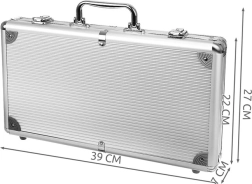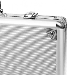 - Robuster Aluminiumkoffer mit Schloss und ergonomischem Griff