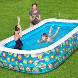 Der Familienpool von BESTWAY mit attraktivem Blumenprint verwandelt Ihren Garten in eine sommerliche Oase. Er lässt sich leicht aufpumpen, schnell befüllen und ist im Handumdrehen bereit für Spiel und Entspannung. Die robuste Konstruktion aus starkem PVC (0,32 mm) hält sommerlichen Aktivitäten stand und bleibt zugleich angenehm komfortabel.