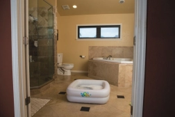 Der integrierte aufblasbare Boden bietet Kindern Komfort beim Sitzen und Spielen und hilft gleichzeitig, das Rutschrisiko beim Baden oder Planschen zu verringern.